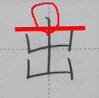 1画目の縦画は、頭をしっかり出す