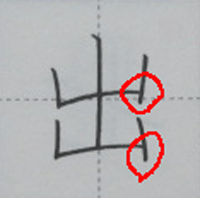 漢字の「出」の綺麗な書き方、習字で書く時のコツ。