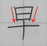 最後の縦画はまっすぐ、真ん中を通るように書く