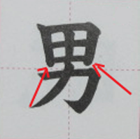 漢字の「男」の綺麗な書き方、習字で書く時のコツ。