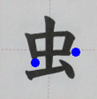 「虫」の書き順動画、習字のお手本