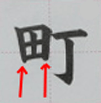 漢字の「町」の綺麗な書き方、習字で書く時のコツ。