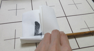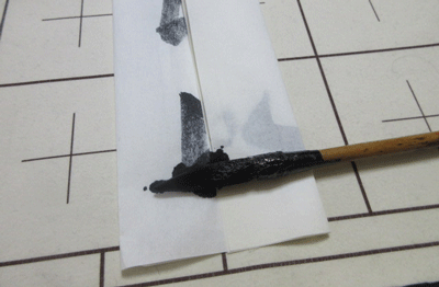 墨を含んだ筆は、書き損じた反故紙や、いらない紙で、包みます。