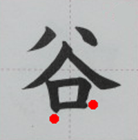 書写の「谷」の書き順動画、習字のお手本