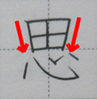 漢字の「思」の綺麗な書き方、習字で書く時のコツ。