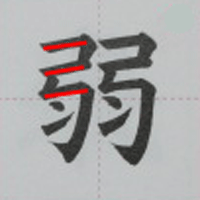 書写の「弱」の書き順動画、習字のお手本