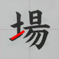 書写の「場」の書き順動画、習字のお手本