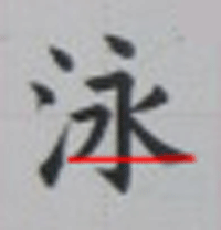 書写の「泳」の書き順動画、習字のお手本
