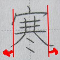 漢字の「寒」の綺麗な書き方、習字で書く時のコツ。
