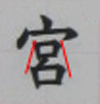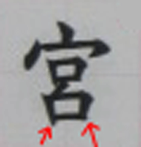 漢字の「宮」の綺麗な書き方、習字で書く時のコツ。
