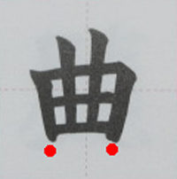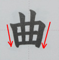 漢字の「曲」の綺麗な書き方、習字で書く時のコツ。