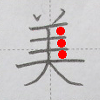 書写の「美」の書き順動画、習字のお手本