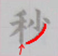 書写の「秒」の書き順動画、習字のお手本