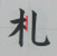 漢字の「札」の綺麗な書き方、習字で書く時のコツ。