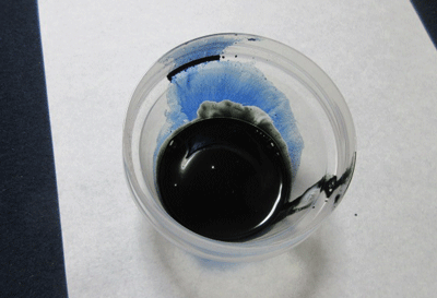 すずりだと気づきにくいのですが、透明や、白の容器で使ってみると、このように↓青みが出てくるんですね。