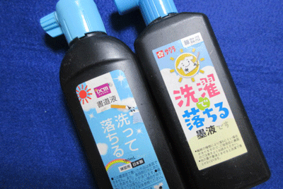 実は、「洗って落ちる系の墨」って、「墨汁」ではなく、「墨汁に近い、カラーインク」なんですよね。