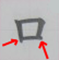 でも「口」は、左側の縦と、最後の横線が少し残るように書いて下さい。