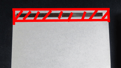 たとえば、長い文鎮を半紙の上部に置いた場合。画像の赤線部分(文鎮を置いた部分)は、空白ができてしまいます。このスペース、結構勿体ないんですよね。