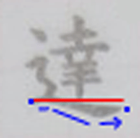 いちばん最後の右払いは、書き始めよりも、低い位置で終われるようにしましょう。