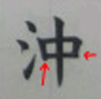 漢字の「沖」の綺麗な書き方、習字で書く時のコツ。
