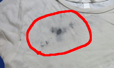 綿100%のTシャツでは、ここまで落ちませんでした。むしろ、汚れが広がってしまった感じですね。