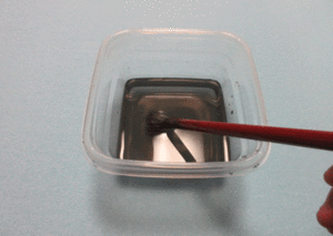 2,筆全体に水をつけ、墨などを使って、ゆっくりほぐしていく
