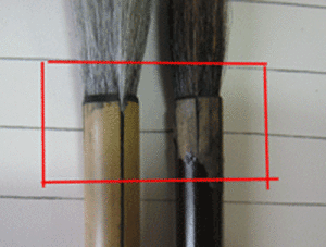 筆の洗い方が不十分だと、軸の中に墨が残ったままになります。そのままさらに放置してしまうと、今度は、筆の中で墨が固まってきます。